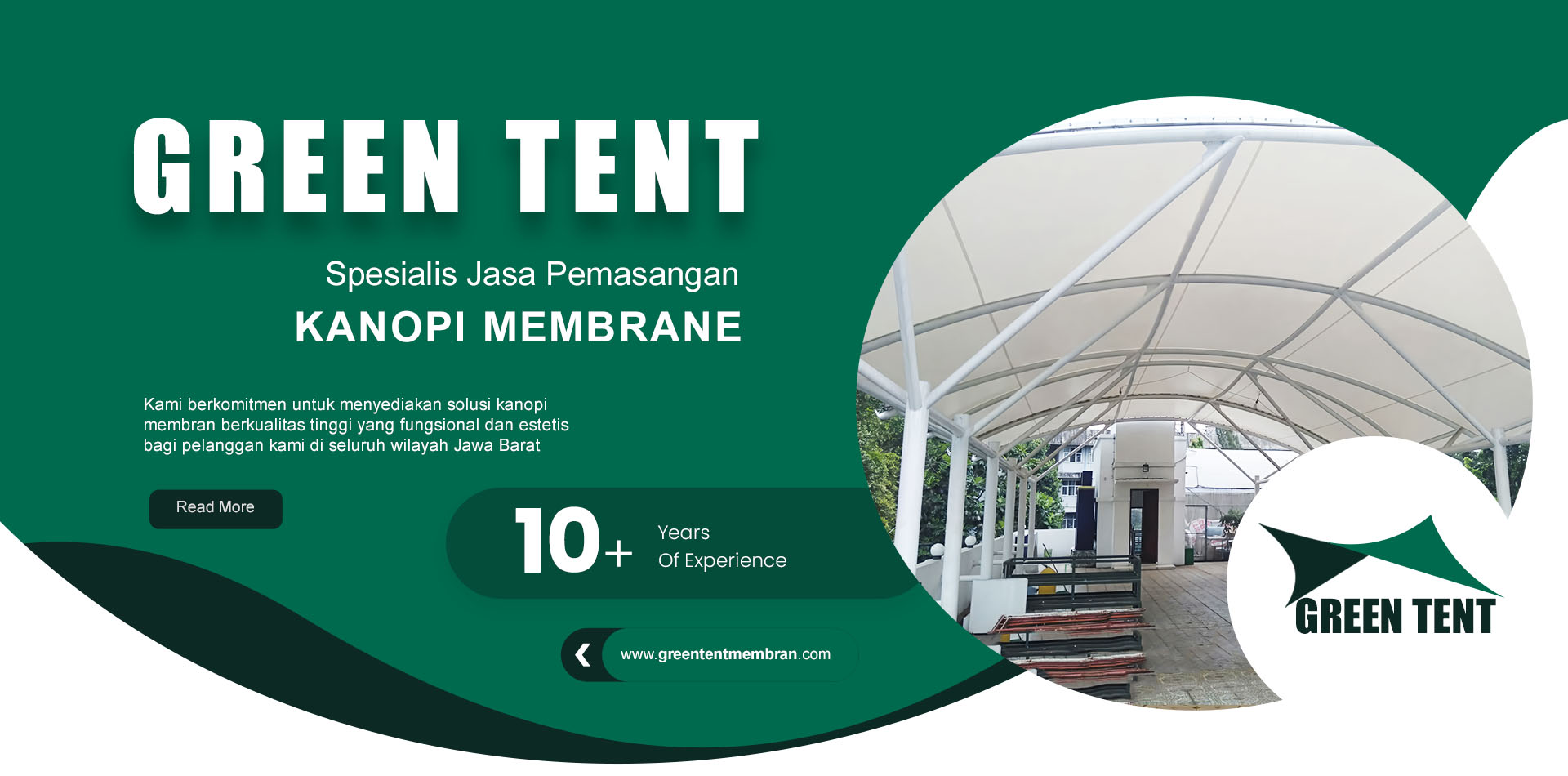 Selamat datang di Green Tent Membran, perusahaan spesialis pemasangan kanopi membran yang telah beroperasi sejak tahun 2013. Kami berkomitmen untuk menyediakan solusi kanopi membran berkualitas tinggi yang fungsional dan estetis bagi pelanggan kami di seluruh wilayah Jawa Barat, khususnya di Bandung, Cimahi, dan sekitarnya.
